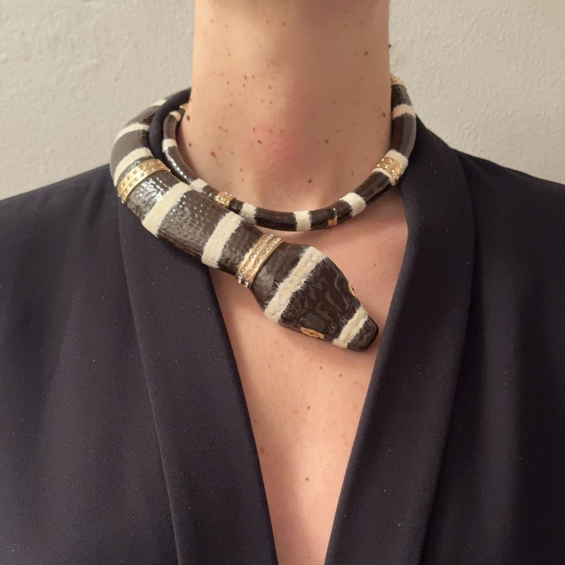 Size: one size Closure: Spring loaded closure Material: Brass, Swarovski Crystal Manufacturing: Casting Process Finishing: 24 Carat Gold Plated, Hand-Enameled 100% Made in Italy