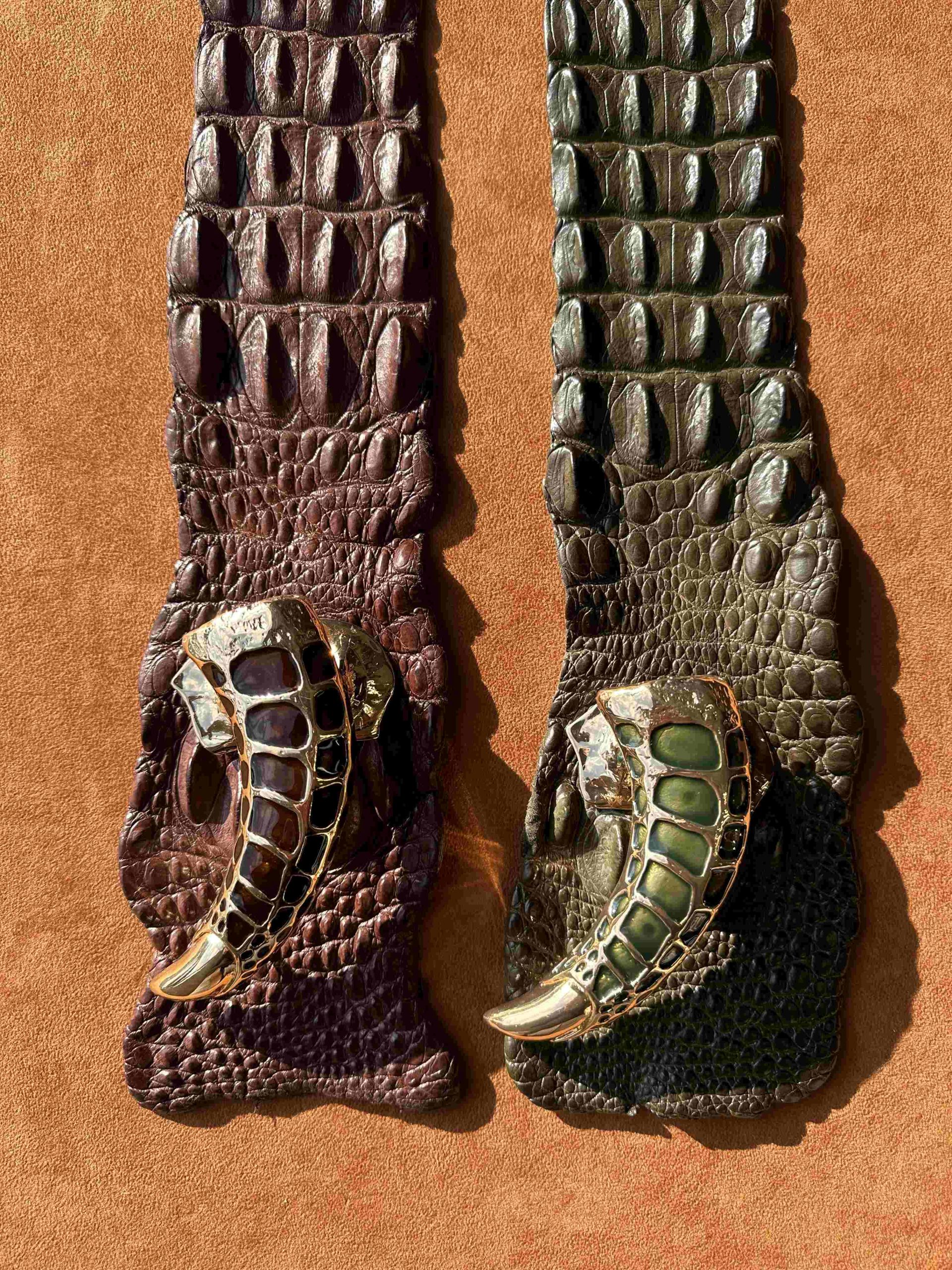Size: one size Material: Crocodile Tail, Brass Clasps Manufacturing: Casting Process Finishing: 24 Carat Gold Plated, Hand-Enameled 100% Made in Italy