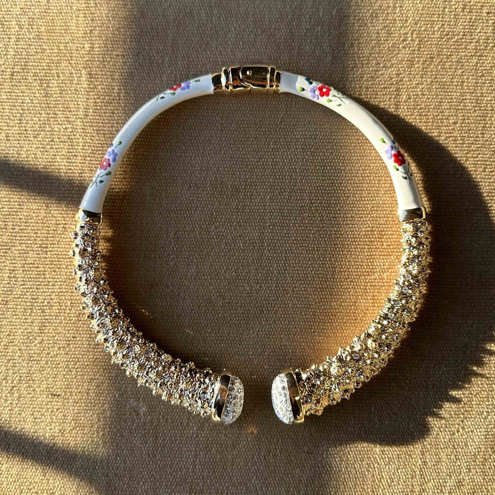 Size: One size Closure: Spring loaded closure Material: Brass, swarovski crystal Manufacturing: Casting Process Finishing: 24 Carat Gold Plated, Hand-Enameled 100% Made in Italy