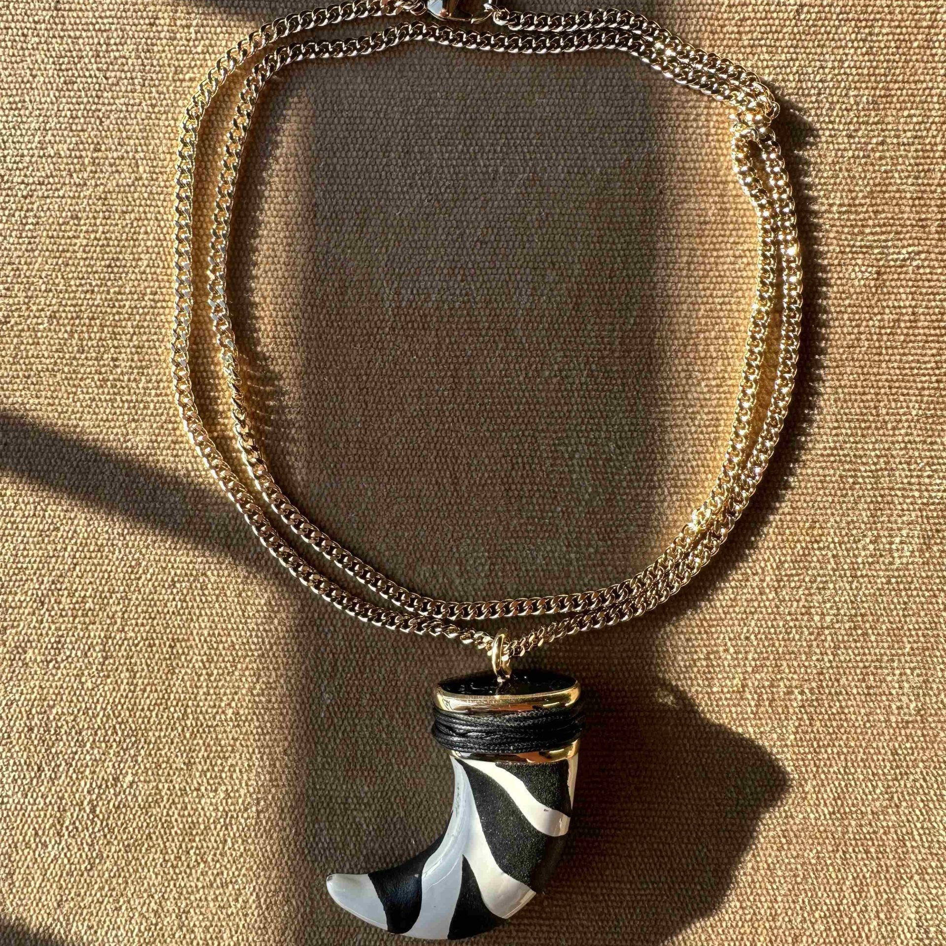 Chain Lenght: 85 cm Material: Brass, twisted cord Manufacturing: Casting Process Finishing: 24 Carat Gold Plated, Hand-Enameled 100% Made in Italy