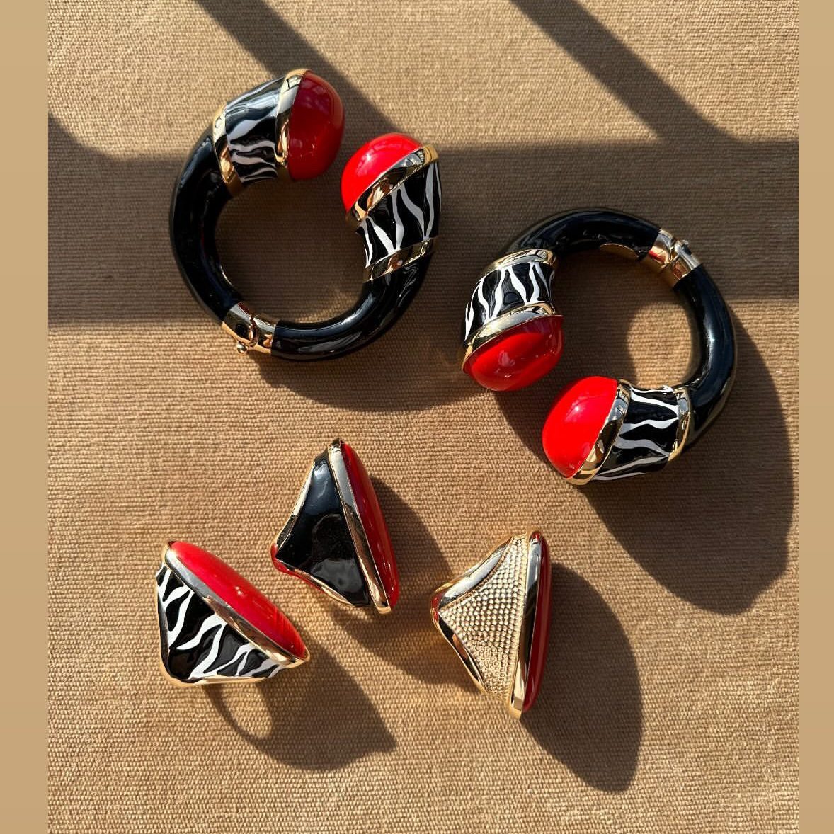 Taglia: unica Apertura: a molla Materiale: ottone Lavorazione: microfusione a cera persa Finiture: placcato oro 24kt smaltato a mano 100% Made in Italy