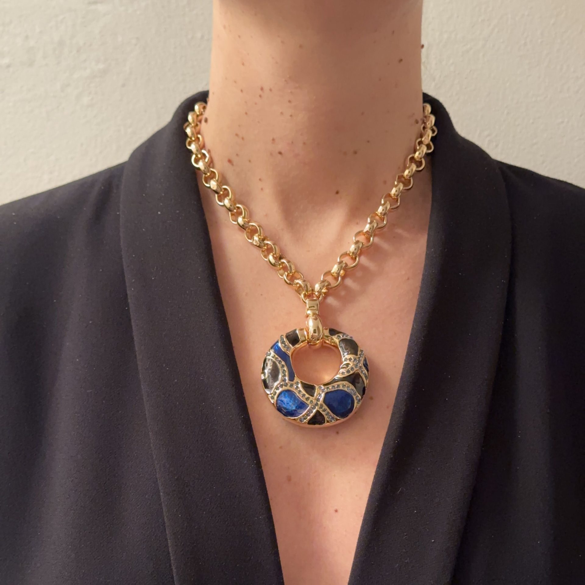 Lunghezza catena: 45 cm Materiale: ottone Lavorazione: microfusione a cera persa Finiture: placcato oro 24kt smaltato a mano 100% Made in Italy